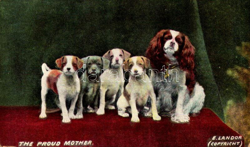 Leírás: "The Proud Mother" Dog with her puppies. E. Landor (fa)