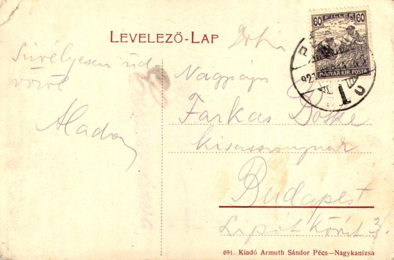 Leírás: 1921 Pécs, M. kir. hadapródiskola. Armuth Sándor kiadása 691. (EM)