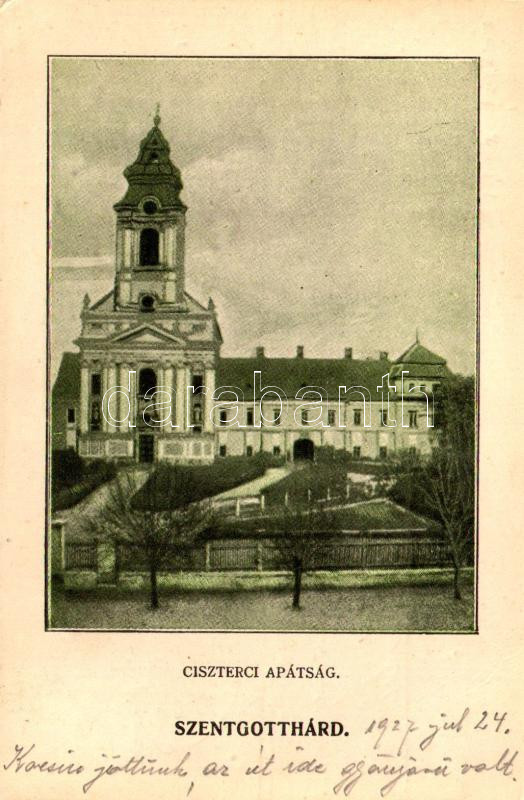 1927 Szentgotthárd, Ciszterci apátság. Wellisch Béla kiadása (EK) https://www.darabanth.com/hu/491-Gyorsarveres/491.0/Kepeslapok/Magyarorszag~1500005/1927-Szentgotthard-Ciszterci-apatsag-Wellisch-Bela-kiadasa-EK~II3186950
