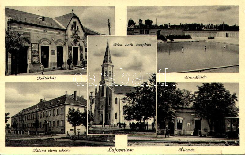 1937 Lajosmizse, Kultúrház, strandfürdő, Állami elemi iskola, Római ka... https://www.darabanth.com/hu/491-Gyorsarveres/491.0/Kepeslapok/Magyarorszag~1500005/1937-Lajosmizse-Kulturhaz-strandfurdo-Allami-elemi-iskola-Romai-katolikus-templom-vasutC3~II3186926