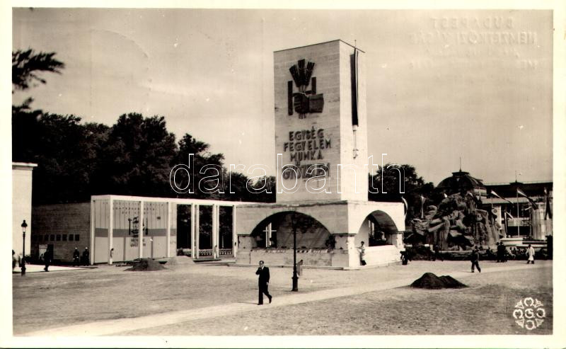 Leírás: 1942 Budapest XIV. Nemzetközi Vásár Háborús Vásár, BNV, "Egység, Fegyelem, Munka, Győzelem" pavilon + So. Stpl.