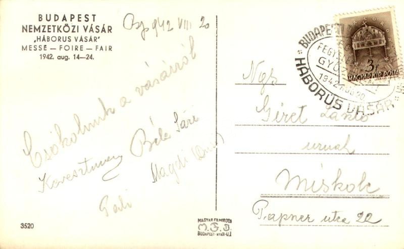 1942 Budapest XIV. Nemzetközi Vásár Háborús Vásár, BNV, "Egység, ... https://www.darabanth.com/hu/491-Gyorsarveres/491.0/Kepeslapok/Magyarorszag~1500005/1942-Budapest-XIV-Nemzetkozi-Vasar-Haborus-Vasar-BNV-Egyseg-Fegyelem-Munka-Gyozelem~II3187622
