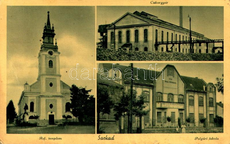 1943 Sarkad, Református templom, cukorgyár, polgári iskola. Gettler An... https://www.darabanth.com/hu/491-Gyorsarveres/491.0/Kepeslapok/Magyarorszag~1500005/1943-Sarkad-Reformatus-templom-cukorgyar-polgari-iskola-Gettler-Andor-kiadasa-fl~II3186286