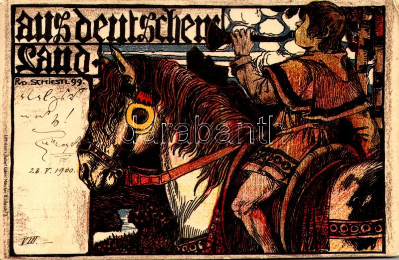 1900 Aus deutscher Land. Hubert Köhler Art Nouveau litho s: R. Schiest... https://www.darabanth.com/hu/491-Gyorsarveres/491.0/Kepeslapok/Muveszlapok~1500080/1900-Aus-deutscher-Land-Hubert-Kohler-Art-Nouveau-litho-s-R-Schiestl-EK~II3190741