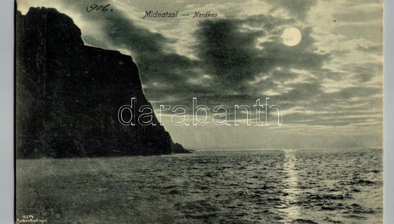 Nordkapp, North Cape; Midnatsol / Midnight sun https://www.darabanth.com/hu/491-Gyorsarveres/491.0/Kepeslapok/Norvegia~1500073/Nordkapp-North-Cape-Midnatsol-Midnight-sun~II3185378
