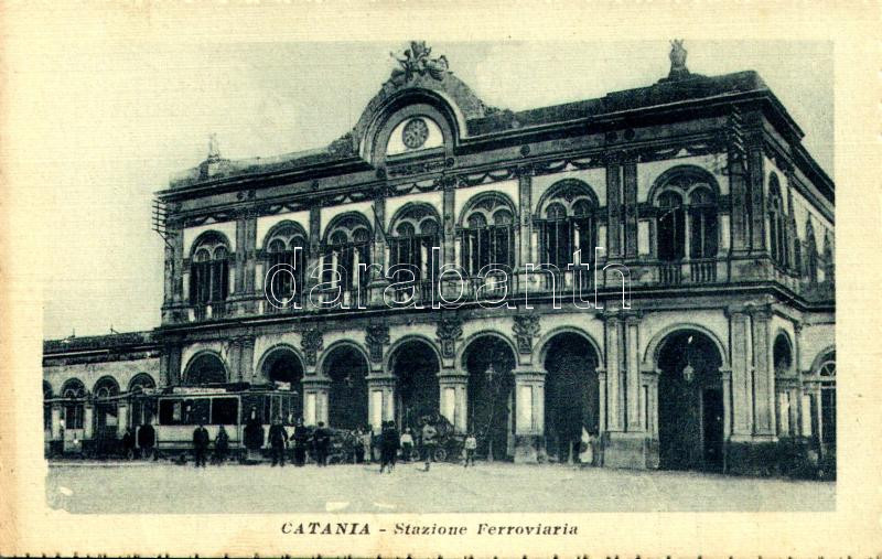 Catania, Stazione Ferroviaria / railway station, tram (EK) https://www.darabanth.com/hu/491-Gyorsarveres/491.0/Kepeslapok/Olaszorszag~1500076/Catania-Stazione-Ferroviaria-railway-station-tram-EK~II3187265