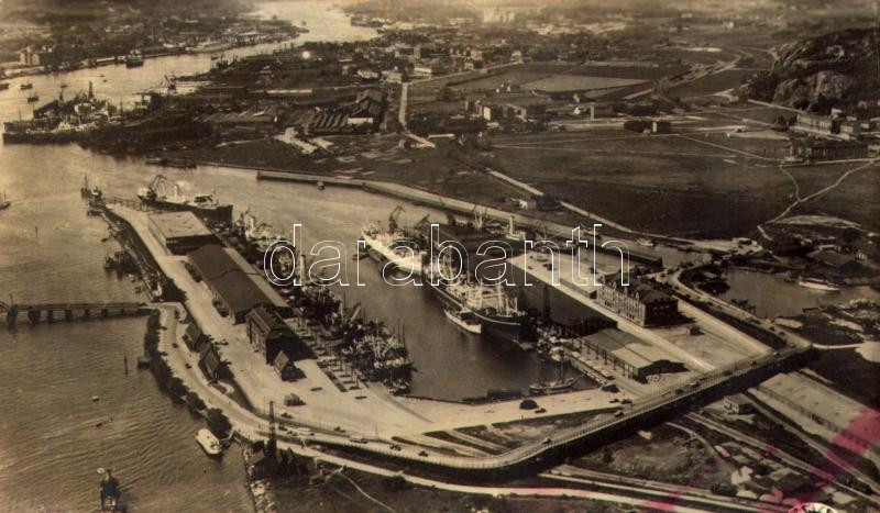 Göteborg, Frihamnen fran Flygplan / aerial view, port with steamships ... https://www.darabanth.com/hu/491-Gyorsarveres/491.0/Kepeslapok/Svedorszag~1500087/Goteborg-Frihamnen-fran-Flygplan-aerial-view-port-with-steamships-glue-marks~II3185928