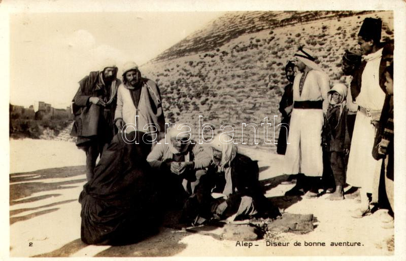 Aleppo, Alep; Diseur de bonne aventure / Fortune teller (fl) https://www.darabanth.com/hu/491-Gyorsarveres/491.0/Kepeslapok/Sziria~1500090/Aleppo-Alep-Diseur-de-bonne-aventure-Fortune-teller-fl~II3186107