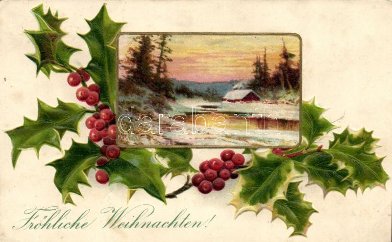 Christmas, landscape, floral, Emb. litho (EK) https://www.darabanth.com/hu/491-Gyorsarveres/491.0/Kepeslapok/Udvozlolapok-Unnepek~1500107/Christmas-landscape-floral-Emb-litho-EK~II1220803