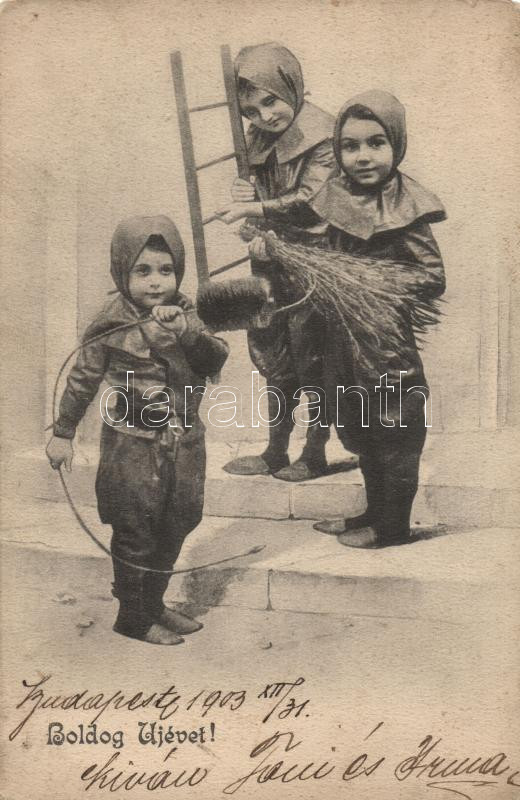 New Year, chimney sweeper children (fl) https://www.darabanth.com/hu/491-Gyorsarveres/491.0/Kepeslapok/Udvozlolapok-Unnepek~1500107/New-Year-chimney-sweeper-children-fl~II852824