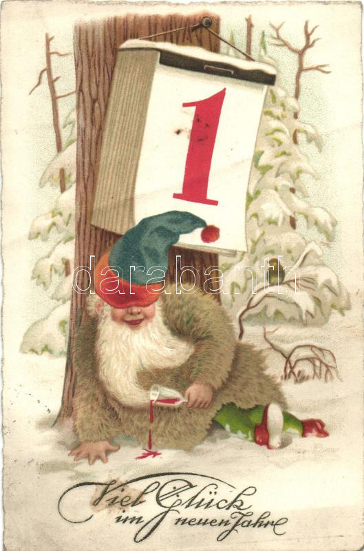 New Year, drunk dwarf Amag Nr. 2431 litho (slightly bent) https://www.darabanth.com/hu/491-Gyorsarveres/491.0/Kepeslapok/Udvozlolapok-Unnepek~1500107/New-Year-drunk-dwarf-Amag-Nr-2431-litho-slightly-bent~II914565