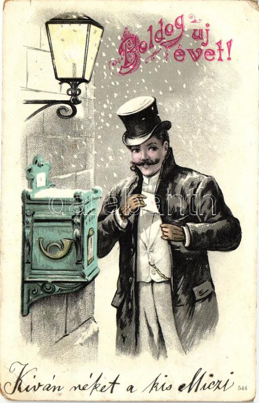 New Year, gentleman with letter, mail box, litho (EK) https://www.darabanth.com/hu/491-Gyorsarveres/491.0/Kepeslapok/Udvozlolapok-Unnepek~1500107/New-Year-gentleman-with-letter-mail-box-litho-EK~II1050641