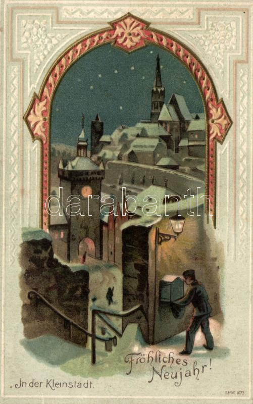 New Year, in der Kleinstadt, Serie 8173. Art Nouveau Emb. litho https://www.darabanth.com/hu/491-Gyorsarveres/491.0/Kepeslapok/Udvozlolapok-Unnepek~1500107/New-Year-in-der-Kleinstadt-Serie-8173-Art-Nouveau-Emb-litho~II1218643
