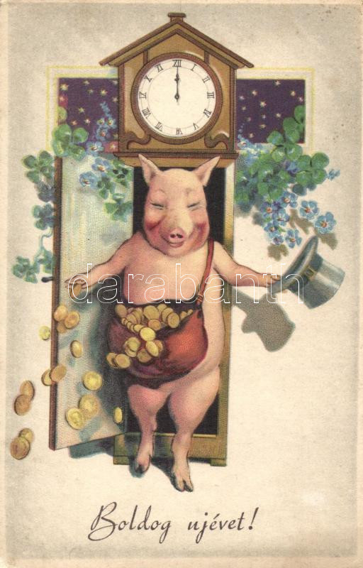 New Year, pig, litho (wet corner)