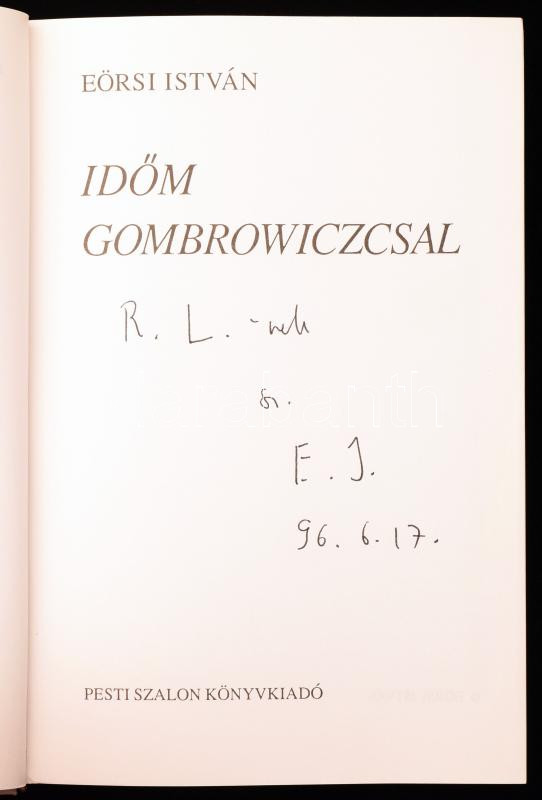 Leírás: Eörsi István: Időm Gombrowiczcsal. é.n., Pesti Szalon, kartonált papírkötés, a szerző által dedikált.