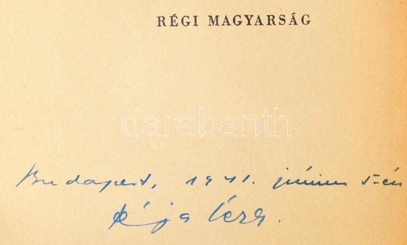 Féja Géza: A régi magyarság. A magyar irodalom története a legrégibb időktől 1772-ig. A szerző, Féja Géza (1900-1978) író, újságíró, szerkesztő által ALÁÍRT, dátumozott példány. Bp., 1941., Magyar Élet, 242 p. 2. kiadás. Kiadói egészvászon-kötés, foltos borítóval és lapokkal.
