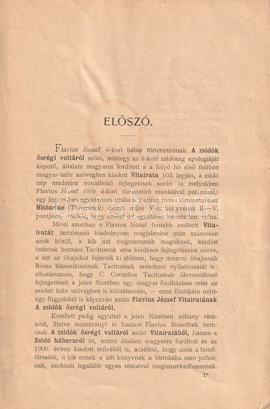 Tacitus római történetíró, a zsidókról. (Részletekkel Flavius József ókori héber történetírónak A zsidók ősrégi voltáról szóló vitairatából és A zsidó háborúról czimű művéből.)