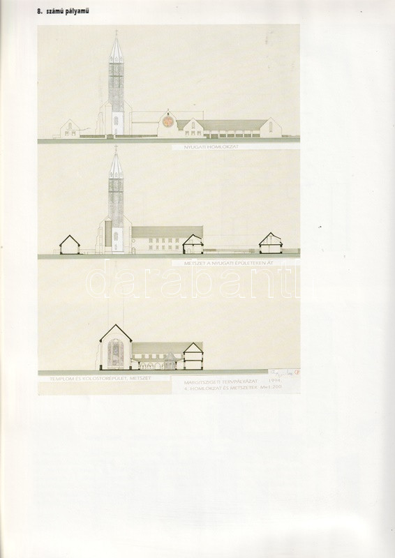 Kiadványunk a fÅ‘városi önkormányzat által a margitszigeti apácakolostor épÃtészeti hasznosÃtásának céljára kiÃrt 1994. évi pályázatra beérkezett 19 tervpályázatot ismerteti. Az illusztrált tervdokumentációkat hártyapapÃrra nyomott határoló lapok tagolják, melyeken a tervrÅ‘l alkotott esztétikai Ãtélet summázata olvasható. Kiadványunk legtöbb oldala szÃnes, oldalszámozáson belüli két levele kihajtható: a rajta szereplÅ‘ tervdokumentáció mérete miatt.