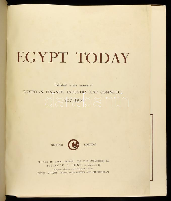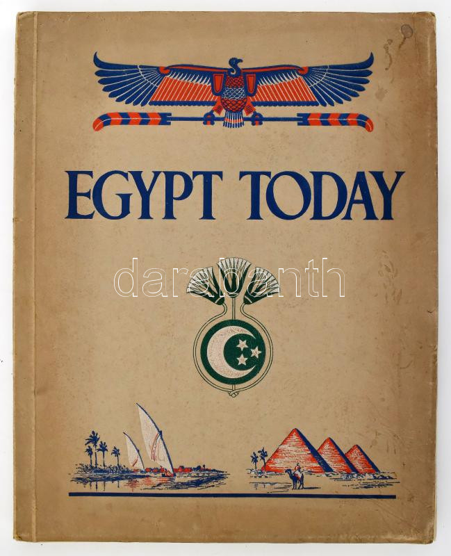 Egypt Today. Published in the Interests of Egyptian Finance, Industry and Commerce. 1937-1938. Second Edition. Edited by Demetrius A. Zoides. Cairo, [1938], Egyptian Trade & Publishing Agency (Derby, Bemrose & Sons Limited), 232 p. Gazdag képanyaggal illusztrálva, hirdetésekkel. Angol nyelven. Kiadói papírkötés, kissé viseltes, a könyvtesttől különvált borítóval, helyenként összeragadt lapokkal.