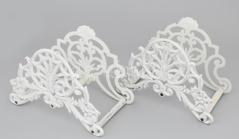 Leírás: Öntöttvas tűzifa gyújtóstartó pár, néhol korrodált, 27x19 cm