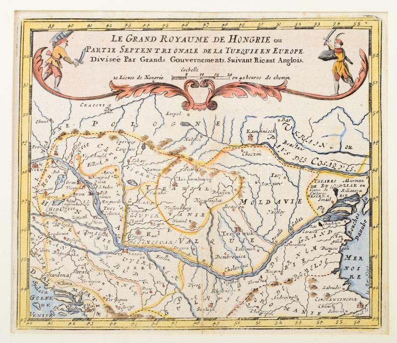 [Magyarország, Erdély és a Román fejedelemségek térképe 1705], Nicolas de Fer (1646-1720). Le Grand Royaume de Hongrie ou Partie Septentrionale de la Turquie en Europe. Szenezett rézmetszet. 17,5 x 16,3 cm Paszpartuban