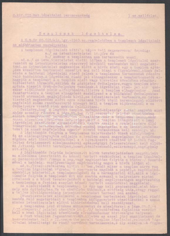 Leírás: 1940 Templomok légoltalma stencilezett kőrlevél 2 p.