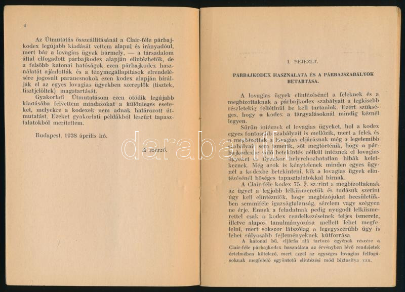 Leírás: Szundy Géza: Gyakorlati útmutatás lovagias ügyek elintézéséhez. Bp., 1938. Kiadói papírkötés, kopottas állapotban.