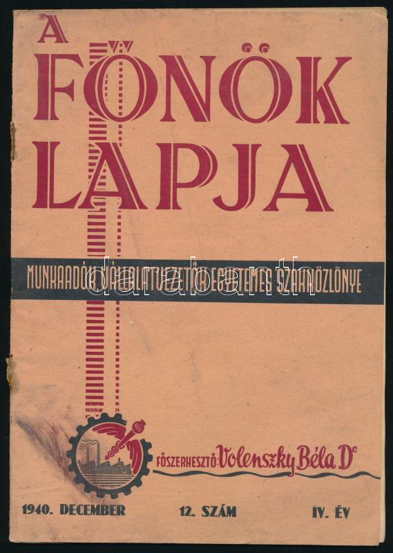 1940 A Főnök Lapja, munkaadók, vállalatvezetők egyetemes szakközlönye ... https://www.darabanth.com/hu/491-Gyorsarveres/491.0/Mutargy-papirregiseg-egyeb/Nyomtatvanyok~1000013/1940-A-Fonok-Lapja-munkaadok-vallalatvezetok-egyetemes-szakkozlonye-IV-evf-12-szama-1~II3372386