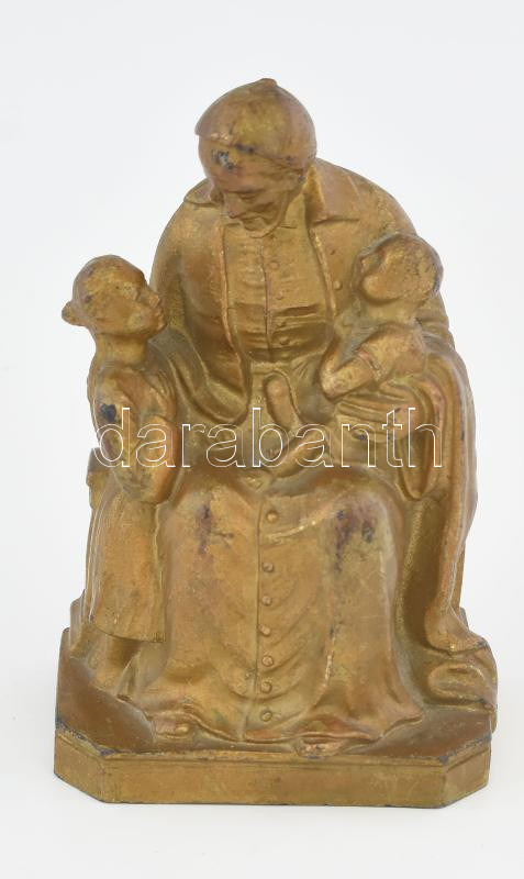 Leírás: Kalazanci Szent József szobra. Bronzírozott ón, jelzett, kopással, m: 11 cm