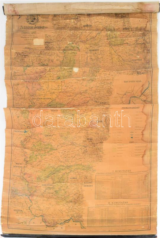1901 A Tiszavölgy vízszabályozási átnézeti térképe, összeáll.: Vályi Béla, 1 : 400.000, Bécs, Cs. és kir. katonai geographiai intézet, nagyméretű falitérkép, viseltes állapotban, sérülésekkel, ázásnyomokkal, 125x78 cm