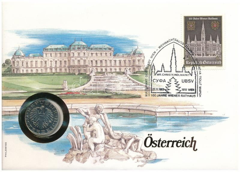 Ausztria 1983. 10Sch Cu-Ni felbélyegzett borítékban, bélyegzéssel, német nyelvű leírással T:UNC
