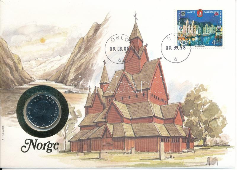 Norvégia 1988. 1K Cu-Ni felbélyegzett borítékban, bélyegzéssel, német nyelvű leírással T:UNC patina