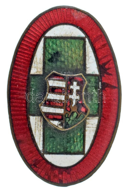 1946-1949. Kossuth-címeres zománcozott bronz jelvény a "M. Kir. Áll. Ápolónő és Védőnő Képző Intézet" jelvényének mintájára, felirat nélkül (34,5x23mm) T:XF,VF zománchibák Hungary 1946-1949. Enamelled bronze badge with "Kossuth" coat of arms, modeled after the "M. Kir. Áll. Ápolónő és Védőnő Képző Intézet" enamelled badge, but without inscriptions (34,5x23mm) C:XF,VF enamel errors