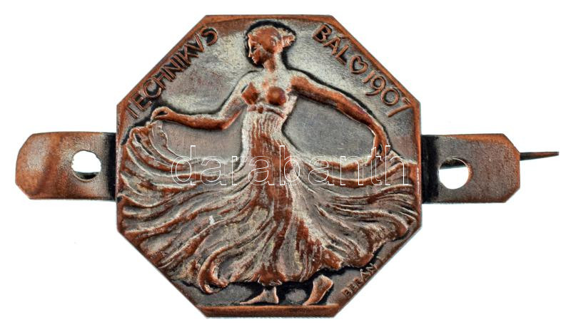 Leírás: Berán Lajos (1882-1943) 1907. "Technikus bál 1907 " ezüstözött bronz jelvény, hiányos (31x50mm) T:XF kopott ezüstözés