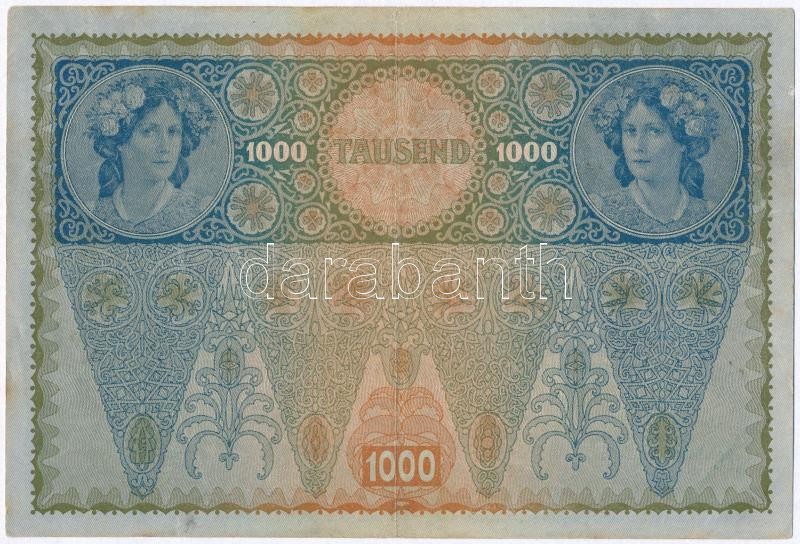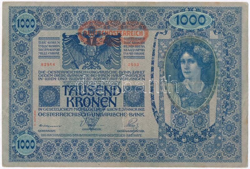 Ausztria 1919 (1902) 1000K hátlap rajzos, piros vízszintes "DEUTSCHÖSTERREICH" felülbélyegzéssel T:F