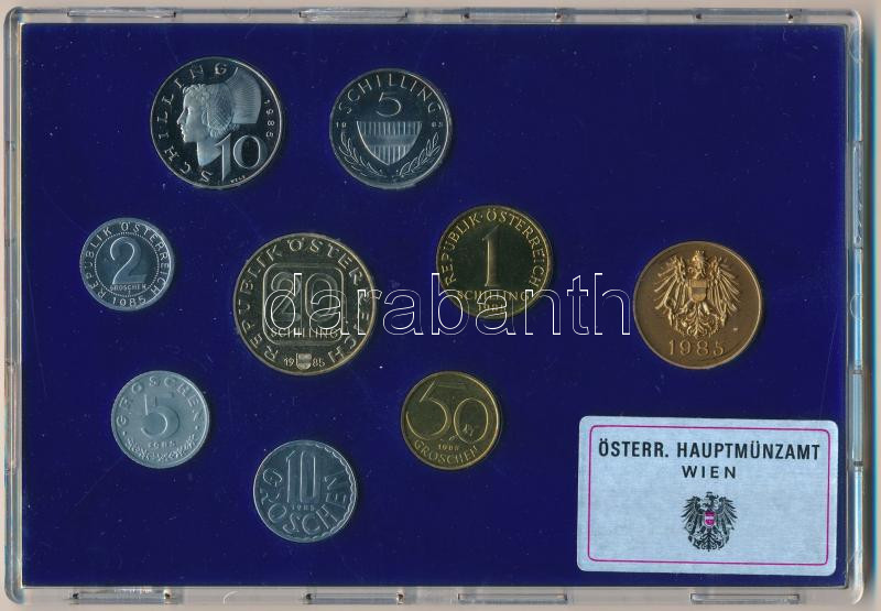Ausztria 1985. 2gr-20Sch (8xklf) forgalmi sor + Bécsi Verde zseton, műanyag dísztokban T:PP