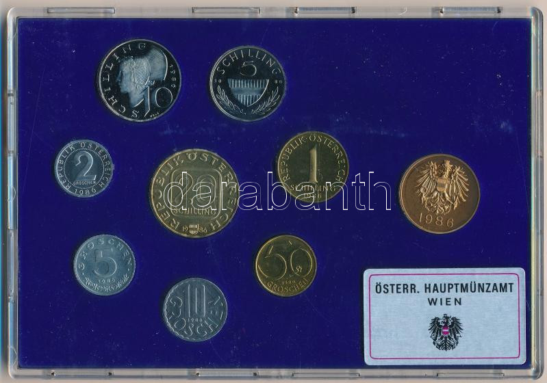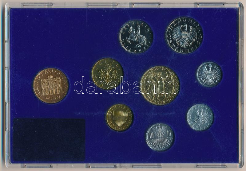 Ausztria 1986. 2gr-20Sch (8xklf) forgalmi sor + Bécsi Verde zseton, műanyag dísztokban T:PP