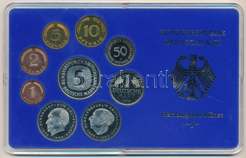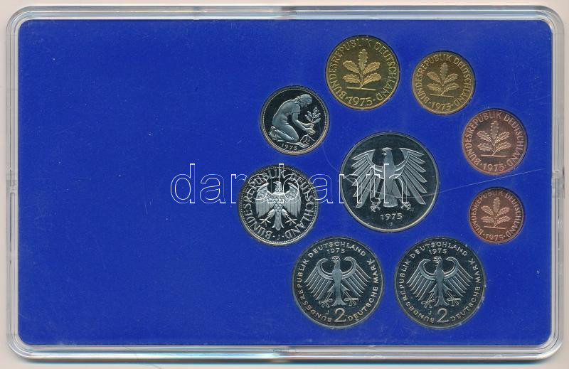Federal Republic of Germany 1975J 1 Pfennig - 5 Mark (9xdiff) coin set in plastic case C:PP halvány patina