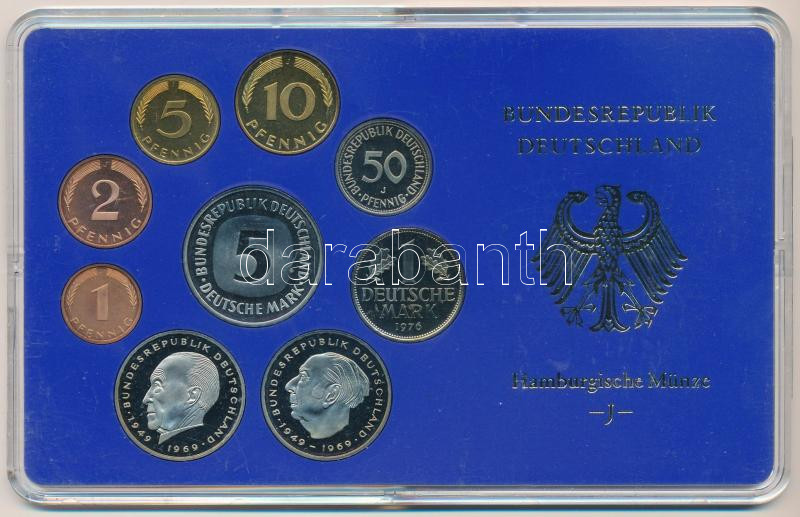 Német Szövetségi Köztársaság 1976J 1pf-5M (9xklf) forgalmi sor műanyag dísztokban T:PP halvány patina