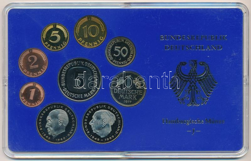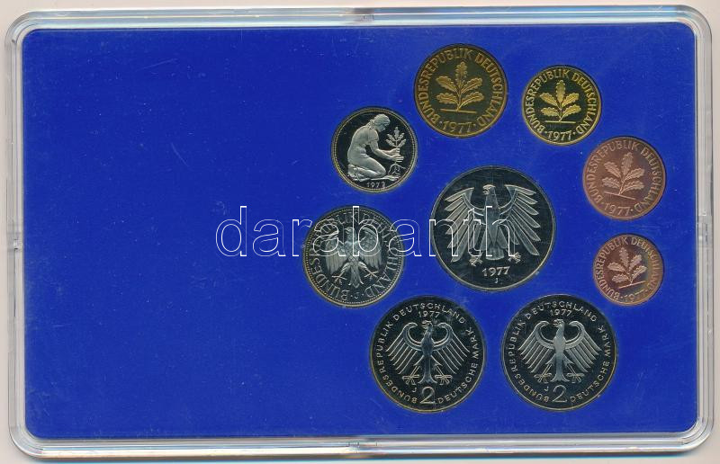 Német Szövetségi Köztársaság 1977J 1pf-5M (9xklf) forgalmi sor műanyag dísztokban T:PP halvány patina