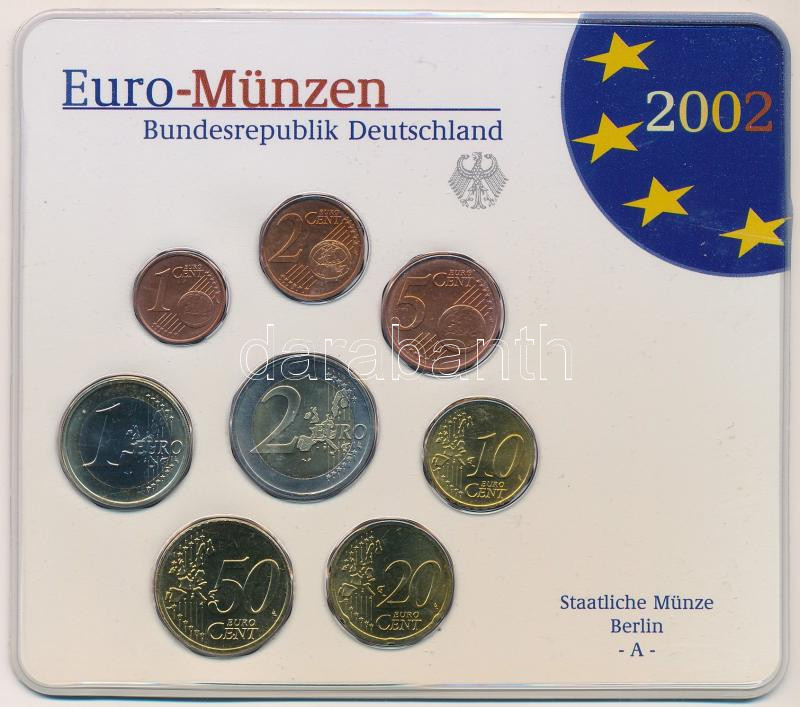 Germany 2002A 1 Cent - 2 Euros (8x) coin set, in sealed plastic case C:UNC