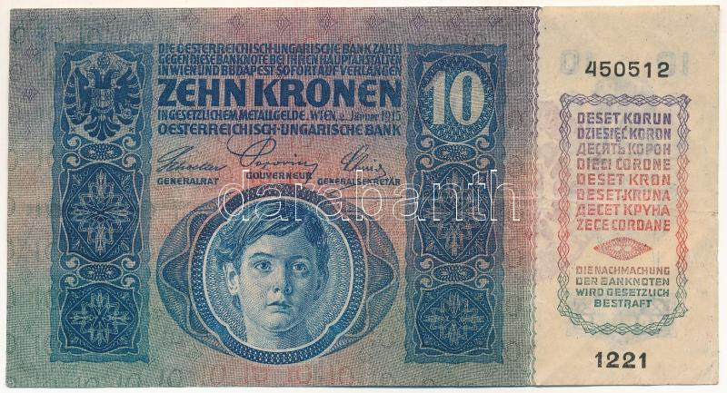1915. 10K piros "MAGYARORSZÁG" felülbélyegzéssel T:F Adamo K... https://www.darabanth.com/hu/491-Gyorsarveres/491.0/Numizmatika/Magyar-bankjegyek~2000008/1915-10K-piros-MAGYARORSZAG-felulbelyegzessel-TF-Adamo-K11~II3370023