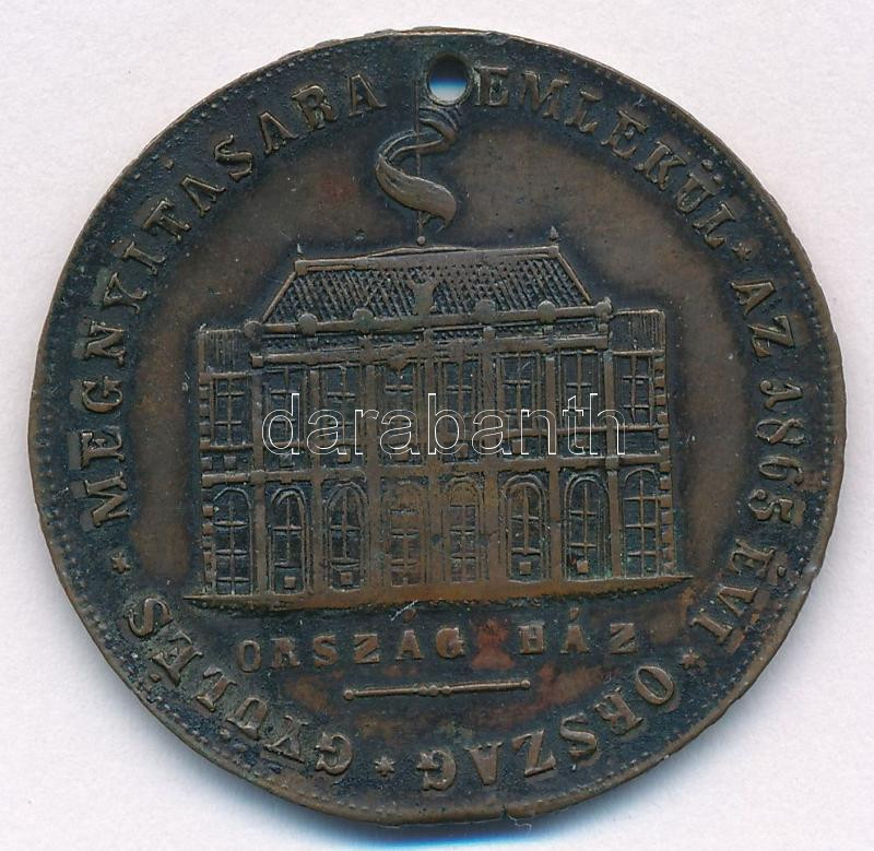 1867. "Érem I. Ferenc József budai koronázására" ezüstözött bronz emlékérem "A BUDA PESTI KORONÁZÁS EMLÉKÜL 1867 JUNIUS 8 ÁN / EMLÉKÜL AZ 1865. ÉVI ORSZÁG GYÜLÉS MEGNYITÁSÁRA PESTEN - ORSZÁG HÁZ", "EMLÉK PÉNZ - UNGARISCHE DENK MÜNZE" peremirattal (38mm) T:VF patina, lyuk