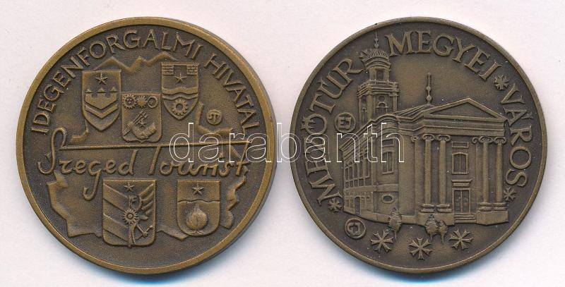 Garamkeszi János (1936- ) 1984. "Mezőtúr megyei város / 10 éves a MÉE Mezőtúri Csoportja" bronz emlékérem (42,5mm) + Tóth Sándor (1933-) DN "Szeged Tourist - Idegenforgalmi Hivatal / Ópusztaszer 896" bronz emlékérem (42,5mm) T:AU