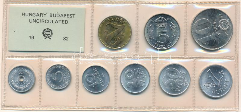 Leírás: 1982. 2f-20Ft (10xklf) érmés forgalmi sor fóliatokban T:UNC