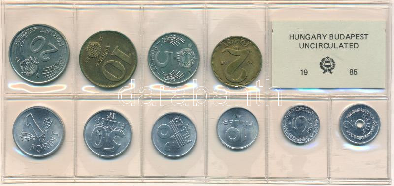 Leírás: 1985. 2f-20Ft (10xklf) érmés forgalmi sor fóliatokban T:UNC