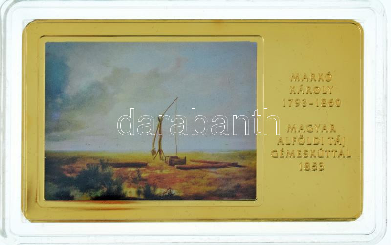 2014. "A magyar festészet remekművei / Markó Károly 1793-1860. - Magyar alföldi táj gémeskúttal 1853." aranyozott, multicolor Cu emlékérem (35x60mm) T:PP