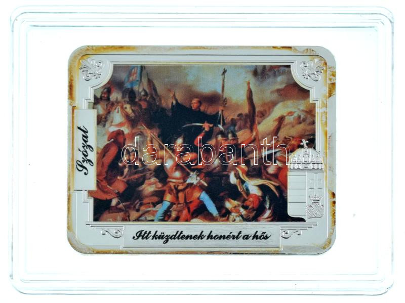 Leírás: DN "A Szózat emlékérmeken - 4. versszak" ezüstözött, multicolor rézötvözet emlékérem (36x46mm) T:PP patina