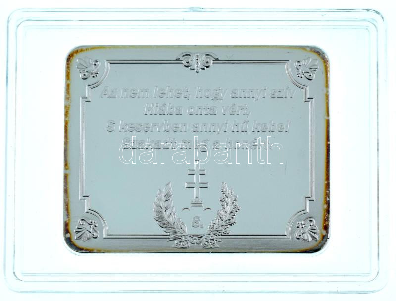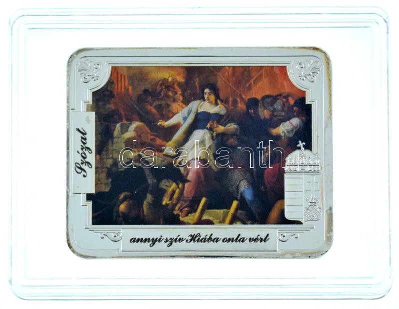 Leírás: DN "A Szózat emlékérmeken - 8. versszak" ezüstözött, multicolor rézötvözet emlékérem (36x46mm) T:PP patina