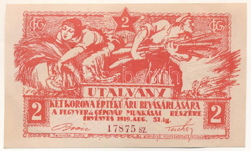 Leírás: Budapest 1919. 2K "Fegyver és Gépgyár" utalvány T:AU